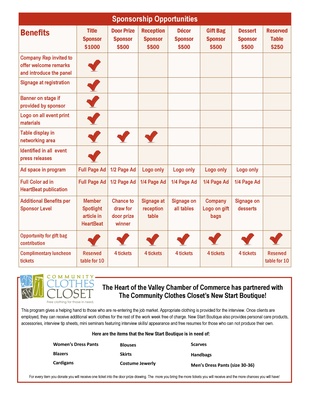 We are partnering with the Community Clothes Closet’s New Start Boutique. We are asking people to bring in new or slightly used business apparel as a donation.